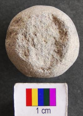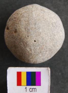 | Description / विवरण | It is a small stone ball with fine surface and perhaps used as sling shot. Its surface is partially broken. |