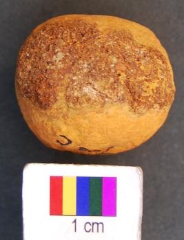 | Description / विवरण | It is a small stone ball, the surface of which is peeling off. |