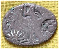 | Description / विवरण | The shape of the coin is oval. Obverse Sun, six armed, animal, taurine, mountain. Reverse Symbols are minute. |