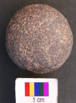 | Description / विवरण | It is a small stone ball with fine surface. It is slightly smaller than a tennis ball. |