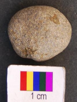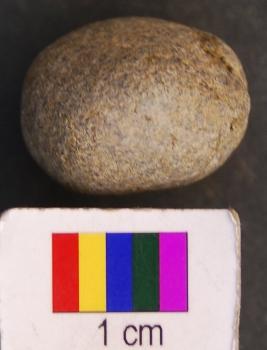 | Description / विवरण | It is a small oval shape stone ball with polished surface. |
