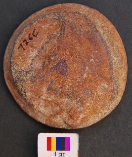 | Description / विवरण | It is disc type base of a stone object, the stand of which is missing. |
