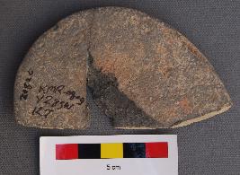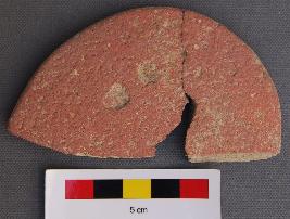 | Description / विवरण | It is a half broken terracotta disc. It is perhaps the biggest disc in our collection from Kanmer. Its one side is oxidised whereas the other side is greyish in appearance. |