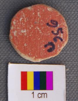 | Description / विवरण | It is small tablet like circular terracotta disc, which is thin in section. It has red slip on one side. |