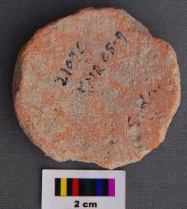 | Description / विवरण | It is a roughly circular terracotta disc with irregular edges. It is made of a pot sherd of Histotic period. |