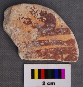 | Description / विवरण | It appears to be a broken terracotta disc. It has dark red painted motif on cream slip on one side. |