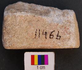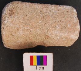 | Description / विवरण | It is fragment of a rectangular stone object, which is partially broken. There is a straight shallow depression in the central part. It was perhaps used as a bead polisher. |
