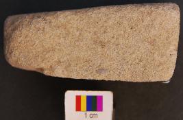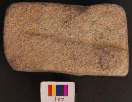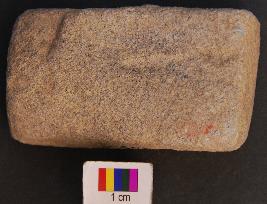 | Description / विवरण | It is a cubiodal stone object with straight grooved depressions on the either side. It may have been used as a bead polisher. |