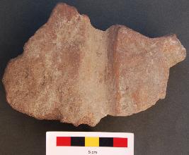 | Description / विवरण | It is an amorphous stone with deep straight grooved lines on either side. It was perhaps used as a bead polisher. |
