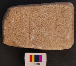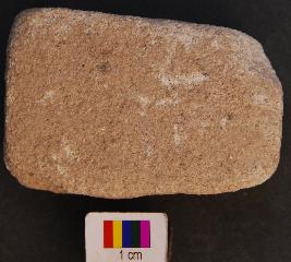 | Description / विवरण | It is a rectangular stone with prominent depressions on one face perhaps used as bead polisher. |