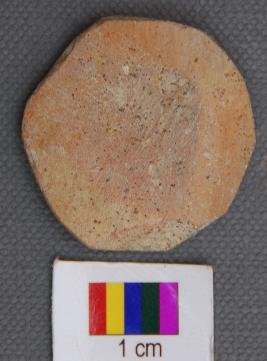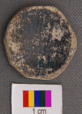 | Description / विवरण | It is a circular terracotta disc with black slip on one side with burnishing. It is made of base of pot of black and red ware as its concave section would indicate. |