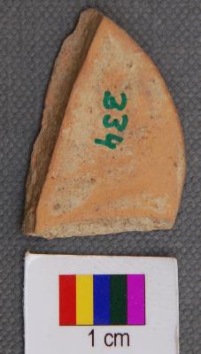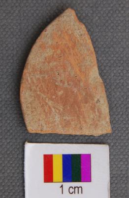 | Description / विवरण | It is fragment of a terracotta disc with thin section and slip on one side. |