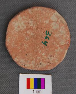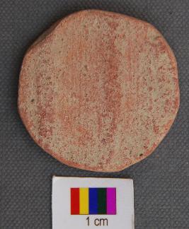 | Description / विवरण | It is circular terracotta disc with thin section. It has rustication on one side. |