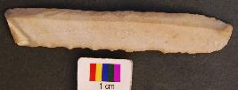 | Description / विवरण | It is a parallel sided blade which is retouched on both sides and has thick section. Its one arm is blunt and its dital end is missing. |