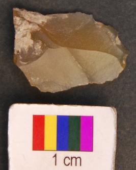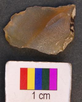 | Description / विवरण | It is a blade with wide face, retouched on both sides, thin section and with prominent bulb of percussion. |