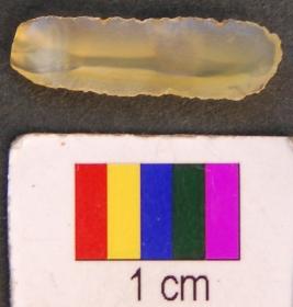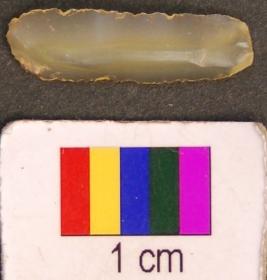 | Description / विवरण | It is a parallel sided blade with retouched sides and thin section. It has a positive bulb of percussion. |