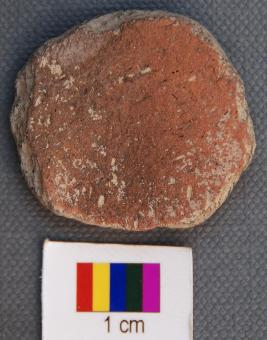 | Description / विवरण | It is a terracotta disc with irregular edges and mde of Historic red ware pot sherd. |