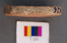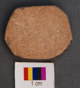 | Description / विवरण | It is a small terracotta disc made of Historic red ware pot sherd. It is treated on one side with red slip and black painting. |