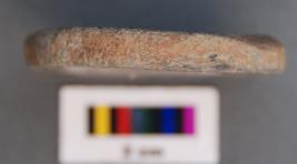 | Description / विवरण | It is a terracotta disc made of Grey ware belonging to Historic period. It has traces of burnishing on one side. |