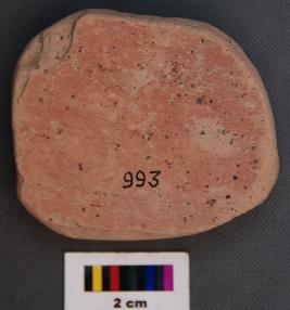 | Description / विवरण | It is a roughly terracotta disc made out of fine Red ware pot sherd of the Harappans. Its sides are ground and has thick section. |