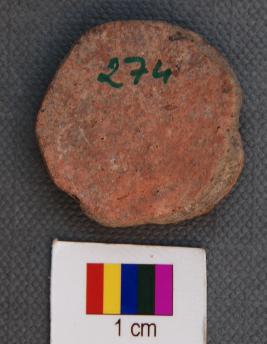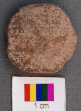 | Description / विवरण | It is a small terracotta disc with thick section and has a black patch on one of sides. |