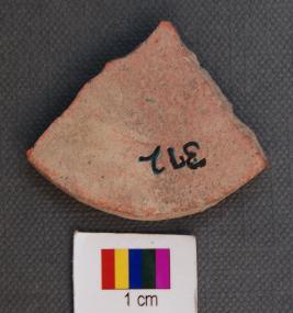 | Description / विवरण | It is fragment of a terracotta disc which appears to be circular. Its edges are grind. |