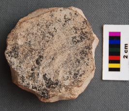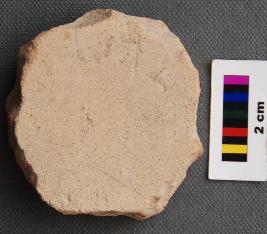 | Description / विवरण | It is circular terracotta disc made of Tarpedo ware pot sherd. It has thick section and bitumen is sticking on one side inner . Its edge is irregular. |