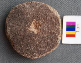 | Description / विवरण | It is a circular terracotta disc with uneven thickness. Perforation has been attempted on one side. It is made of gritty red ware of Harappan deposit. |