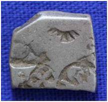 | Description / विवरण | It is an imperial type of coin. The shape of the coin is irregular. Obverse Sun, six armed chakra and chakra. Reverse Fish. |