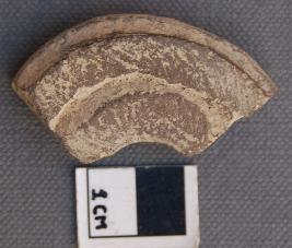 | Description / विवरण | It is a perforated terracotta disc like object with shallow depression on one side and swollen rim. It has a grooved line on the other side. |