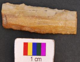 | Description / विवरण | It is fragment of a parallel blade with serrated sides. It has thick section. |