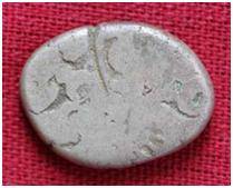 | Description / विवरण | It is an imperial type of coin. The shape of the coin is oval. Obverse Sun, six armed chakra and other symbol are indistinct. Reverse Blank. |