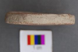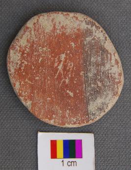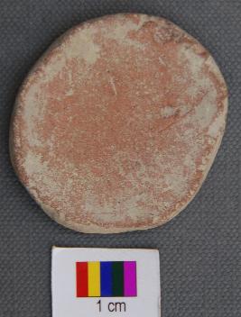 | Description / विवरण | It is a terracotta disc with partially grind edges. It has thin section. It has red slip on one side. |
