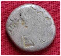 | Description / विवरण | It is an imperial type of coin. The shape of the coin is circular. Obverse Sun, Nandipada, Mountain and six armed chakra. Reverse Taurine and other symbols are indistinct. |