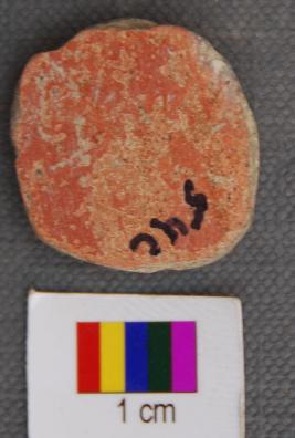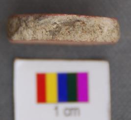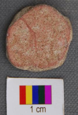 | Description / विवरण | It is a small terracotta disc with partially grind edges. It has thin section and has red slip on one side. |
