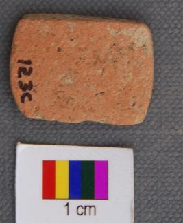 | Description / विवरण | It is a small rectangular terracotta disc with partially grind edges. It has thin section . |