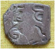 | Description / विवरण | The coin is an imperial type Punch- marked Coin. The shape of the coin is rectangular. Obverse Sun, six armed chakra, mountain, S symbol and other one symbol is indistinct. Reverse Crescent topped two arched hill. |