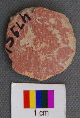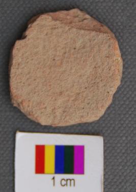 | Description / विवरण | It is a small terracotta disc with irregular edges. It has thin section and has red slip on one side. |