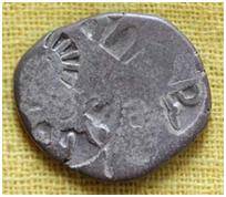 | Description / विवरण | The coin is an imperial type Punch- marked Coin. The shape of the coin is circular. Obverse Sun, mountain, six armed chakra and other one symbol is indistinct. Reverse Blank. |