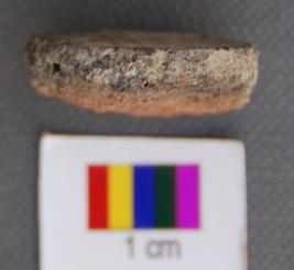 | Description / विवरण | It is a small terracotta disc with rough edges. It has peeled off on one side. |