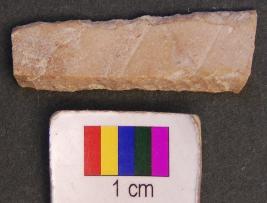 | Description / विवरण | It is fragment of a parallel sided retouched blade with blunt edges. It has thick section. |