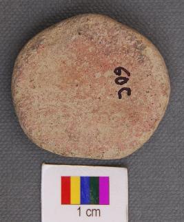 | Description / विवरण | It is a roughly terracotta disc with irregular edges. It has thin section and made of red ware pot sherd. |