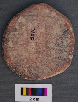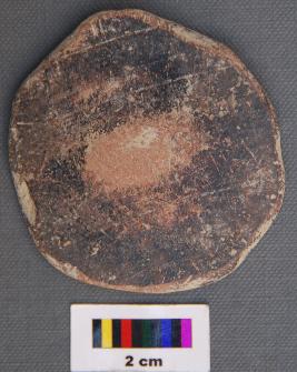 | Description / विवरण | It is a terracotta disc made of pot sherd of chocolate slipped pot. Its edges are partially grind. It has thin section. |
