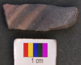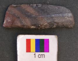 | Description / विवरण | It is a fragment of a parallel sided retouched blade with one side blunt. It has thick section. Its striking end is missing. |
