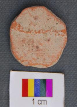 | Description / विवरण | It is a small terracotta disc with partially grind edges. It has thin section and made of red ware pot sherd and looks like tablet. |