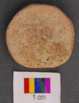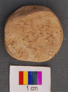 | Description / विवरण | It is a small terracotta disc with grind edges. It has thick section and made of red ware pot sherd. |