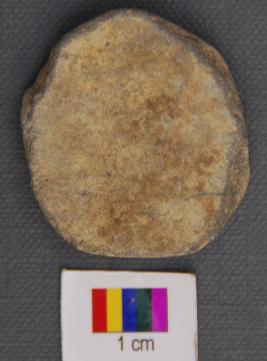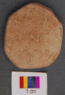 | Description / विवरण | It is a roughly terracotta disc with partially grind edges. It is made of red slipped ware pot sherd. |
