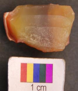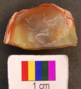 | Description / विवरण | It is an edge shape fluted core of green chert from which blades have been removed. |