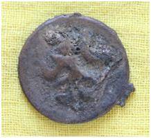 | Description / विवरण | The shape of the coin is circular. Obverse- Kushana type king standing with his right arm upward and left arm downward. Reverse- probably the figure of MAO or Moon God- with right arm curved and upward and the crescent above the left shoulder. |
