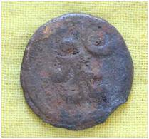 | Description / विवरण | The shape of the coin is circular. Obverse- Kushana type king standing with his right arm upward and left arm downward. Reverse- probably the figure of MAO or Moon God- with right arm curved and upward and the crescent above the left shoulder. |